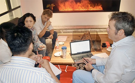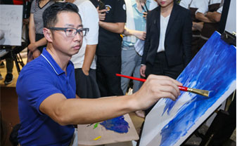 活動(dòng)還特別設(shè)置了油畫創(chuàng)作環(huán)節(jié),讓設(shè)計(jì)師們?cè)诜泵Φ墓ぷ髦喃@得身心的愉悅。李鷹先生、伊瓦諾先生和藝術(shù)家CAMILO CADENA先生、郁一一女士藝術(shù)家圍坐在圓形壁爐上認(rèn)真創(chuàng)作,仿佛置身于戶外大自然中,獲得了靈感與創(chuàng)意的來(lái)源。